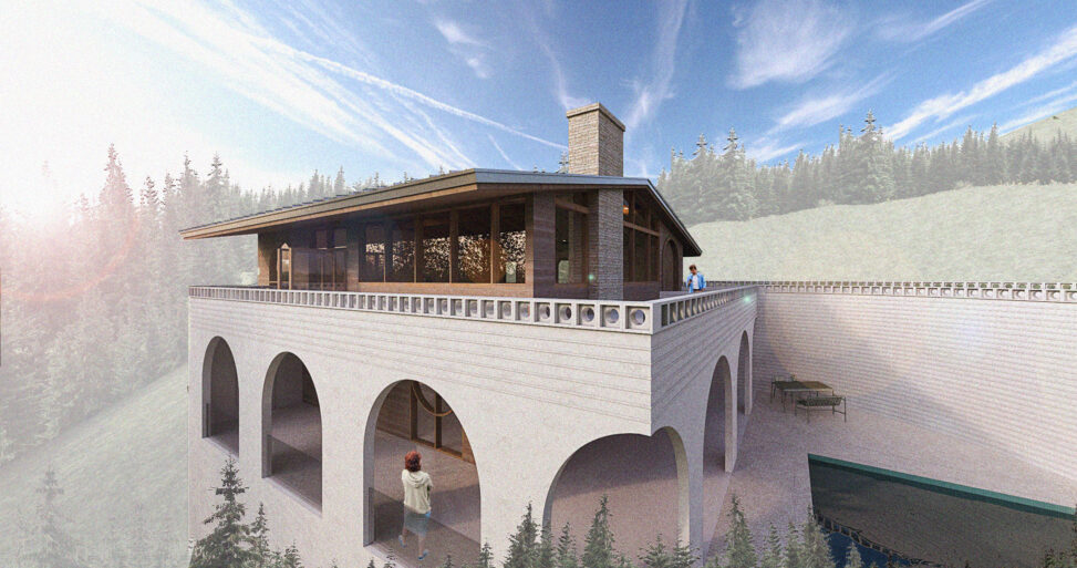 A rare opportunity to build a new home in a hillside neighborhood, this home features an open living area with a wrap-around deck at the upper level. A lower level of bedrooms open onto an arched colonnade. A connected accessory dwelling unit is tucked into the hillside with separate access, yet can be connected to the main house for intergenerational living.